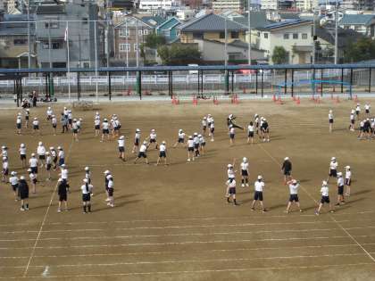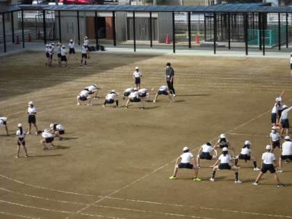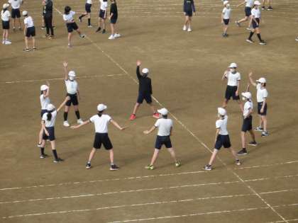 体育参観で演技する「ソーラン」の自由演技の部分の振り付けを,グループで考えている様子です。みんなで相談しながら,よりかっこよくしようとしていました。
