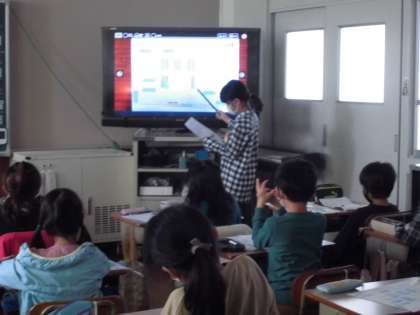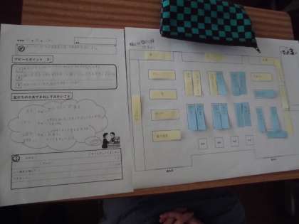 自分が考えたスーパーマーケットの工夫を発表しました。アピールポイントを2つか3つにしぼって発表していました。