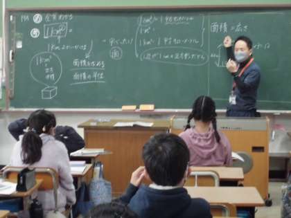 4年・算数「面積」 公開日 2021/10/26 更新日 2021/10/26 4年生 町や市などの,ものすごく広い面積を表す単位「平方km」の学習をしました。単位の換算が難しくなってきます。 写真はこちら↓ 閉じる