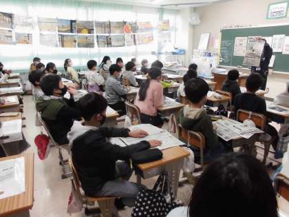 5年・社会「新聞社の出前授業」 公開日 2021/12/03 更新日 2021/12/03 5年生 新聞社から,出前授業に来ていただきました。新聞記事の特徴,紙面のつくり方,印刷の仕組み,紙の性質などたくさんのことを教えていただきました。ありがとうございます。 写真はこちら↓ 閉じる