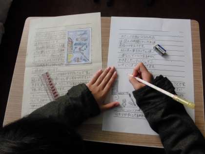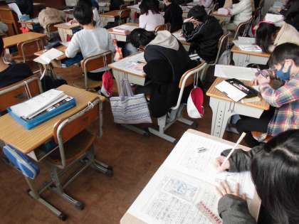 3年・国語「これがわたしのお気に入り」 公開日 2022/02/15 更新日 2022/02/15 3年生 この1年間で制作した作品の中で,自分の一番のお気に入りを選んで紹介する作文を書きます。写真は,清書をしているところです。 写真はこちら↓ 閉じる