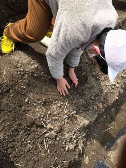 地域の芝尾農園さんの畑を借りました。芽を上にして植えると育ちやすいそうです。