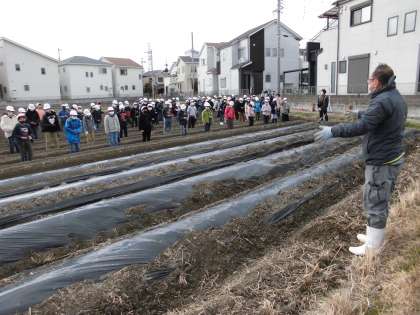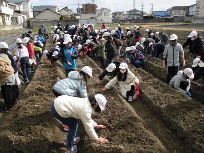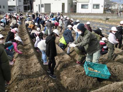 ジャガイモの種を植えた後は,芝尾農園の皆さんがお世話してくださいます。