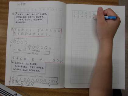 1年・ 算数「たしざんとひきざん」 公開日 2022/02/16 更新日 2022/02/16 1年生 問題を読んで図をかき,たし算かかひき算かを考えます。「ぜんぶで」とか「のこりは」とかの,キーワードにも着目します。 写真はこちら↓ 閉じる