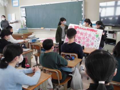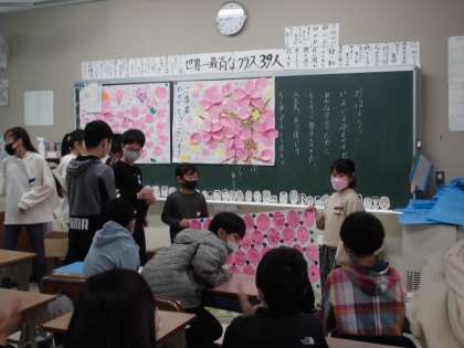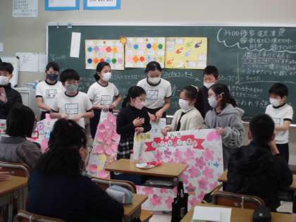 6年生とのお別れ式をしました。テレビ放送で児童会の引継ぎ式を行った後,在校生がつくったお別れメッセージを届けに行きました。卒業式まで,あと2週間です。
