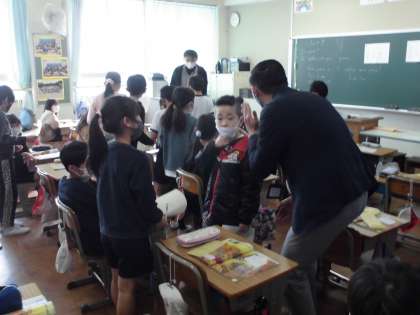 3年・外国語活動「Who are you ?」 公開日 2022/03/08 更新日 2022/03/08 3年生 友だちに質問しながら,友だちは何の動物になったのかを当てていきます。密にならないよう,工夫しながら活動しています。 写真はこちら↓ 閉じる