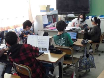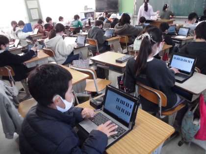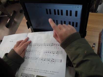 4年・音楽「演奏テスト」 公開日 2022/03/11 更新日 2022/03/11 4年生 タブレットのキーボードアプリを使い,演奏テストをしている様子です。練習してひけると思った子から,先生に聞いてもらいます。タブレットは,こんなこともできるのですね。 写真はこちら↓ 閉じる