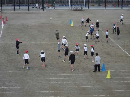 卒業を前に,運動場で仲良くボール運動を楽しみました。楽しい思い出になりますように。