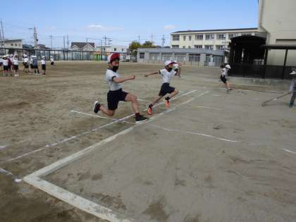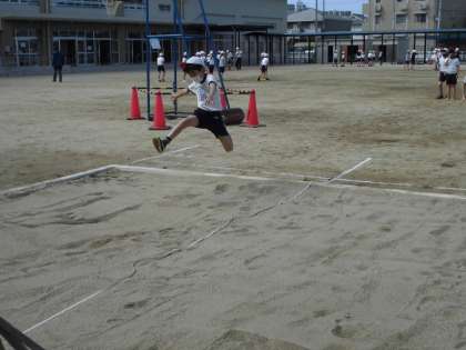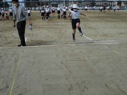3年・体育「走りはばとび」 公開日 2022/03/15 更新日 2022/03/15 3年生 走り幅跳びに挑戦しました。片足で踏み切った後,反対の足の膝を大きく上げてジャンプし,両足で着地する練習です。 写真はこちら↓ 閉じる