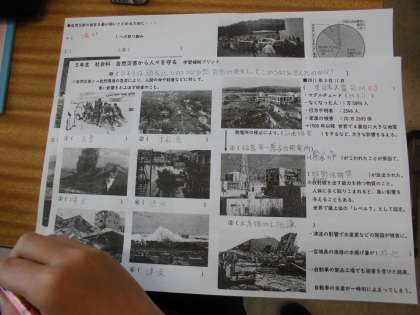 5年・社会「環境とわたしたちのくらし」 公開日 2022/03/16 更新日 2022/03/16 5年生 過去に日本で起きた自然災害をふり返り,それらの災害からどんなことを学び,どんな防災に生かしているのか学習しました。心構えと準備が大切です。 写真はこちら↓ 閉じる