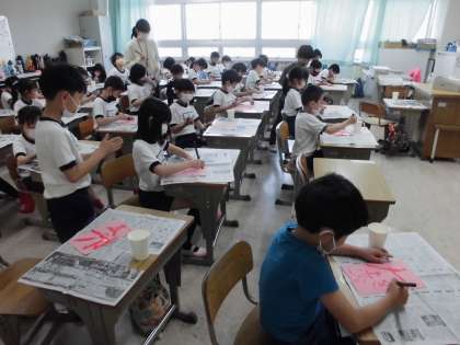 1年・書写「水ひつ」 公開日 2022/03/17 更新日 2022/03/17 1年生 水で濡らすと色が変化する用紙に,水を含ませた筆で,ひらがな,カタカナ,漢字など,たくさんの字を書きました。乾くと字が消えていくのが,楽しそうでした。 写真はこちら↓ 閉じる