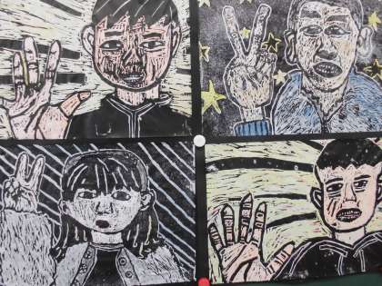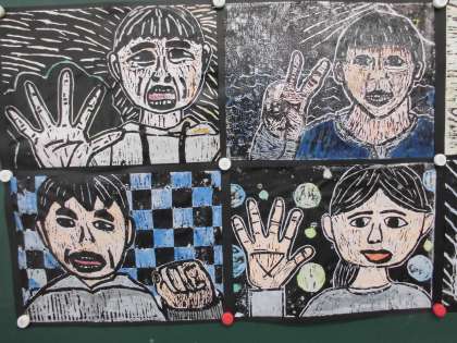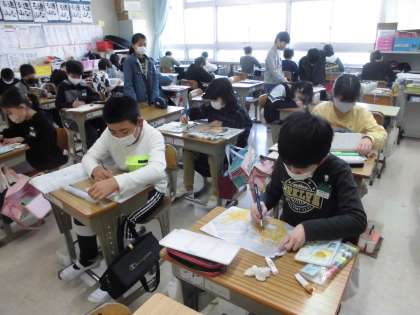 自画像の作品が,完成してきました。「さすが5年生」と言える作品が勢ぞろいです。