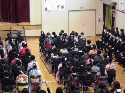 担任から一人ひとり名前を呼ばれ,返事をして保護者に顔を見てもらいました。
