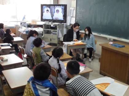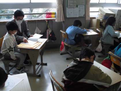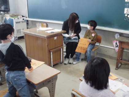 一人ずつ話を聞きながら,通知表を受け取りました。