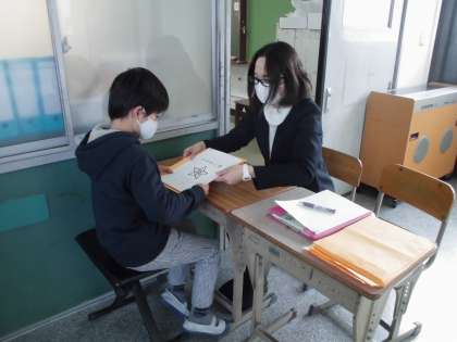 先生から通知表を受け取りました。その間,静かに自習をしました。