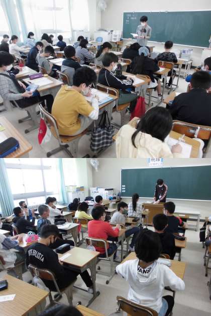 提出物の回収や児童会や学級での係を決めたり、自己紹介をしたりしています。