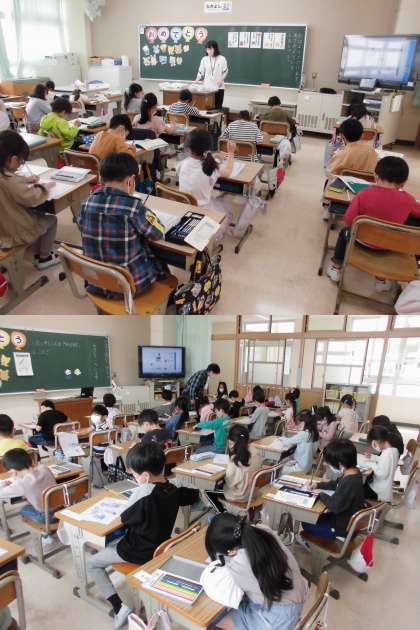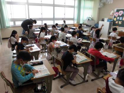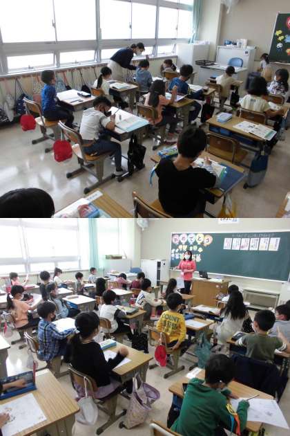 今日は、どの学級でも、「せんをかく」練習に取り組んでいます。