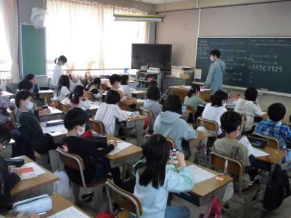 算数の授業で、新しく始まる「千万より大きい数」の学習に向けて、3年生で学習したことを思い出しています。