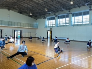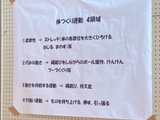 体つくり運動の4領域をしっかり使って体つくりを学んでいます。普段使わない筋力。先生方も頑張っています。