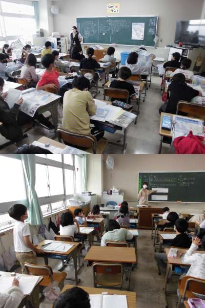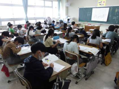 社会科の授業では、わたしたちのまち堺を使って、堺市のことについて学習しています。自分たちの住んでいる堺市のことです。しっかり考えてくださいね。