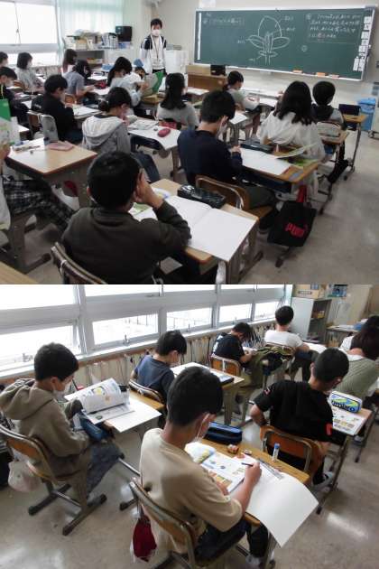 理科の授業で、アブラナの観察とつくりについて学習しています。