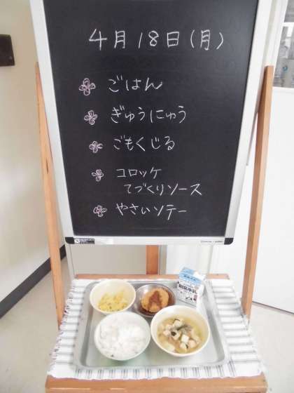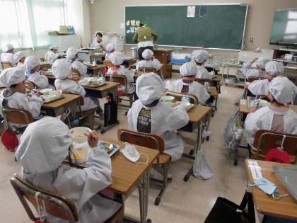 1年生の子どもたちは、しばらくの間、少しはやめに給食がはじまります。