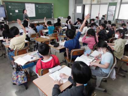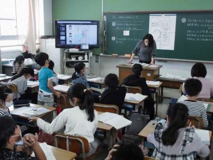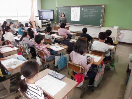 社会科の授業で大阪府の交通の広がりについて考えています。