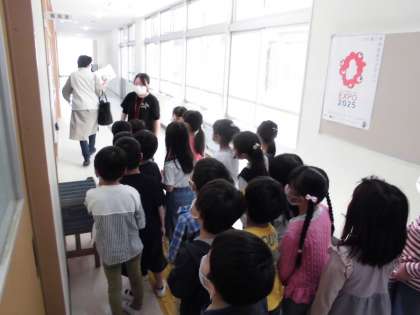 1年生の子どもたちが学校探検をしています。校長室や職員室の場所も確認できましたね。