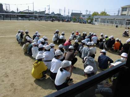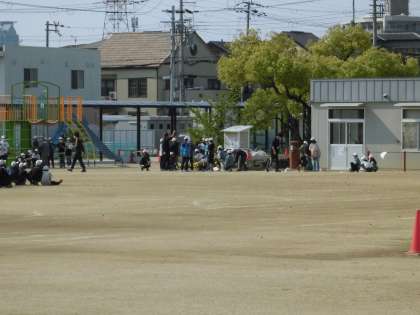 運動場に集まって、何をしているのかと思って見に行くとクラブを決めていました。