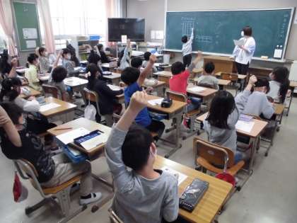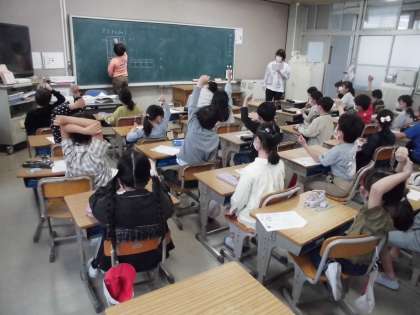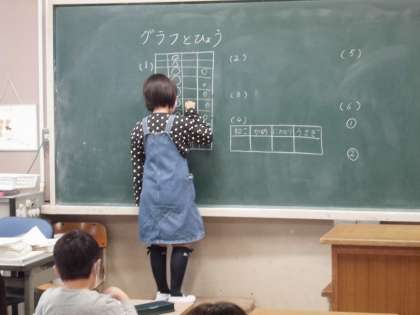 算数の授業で「ひょうとグラフ」のプリント学習に取り組んでいます。