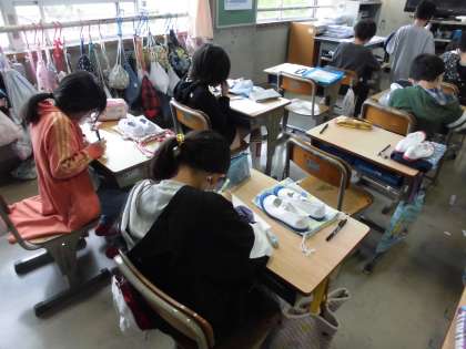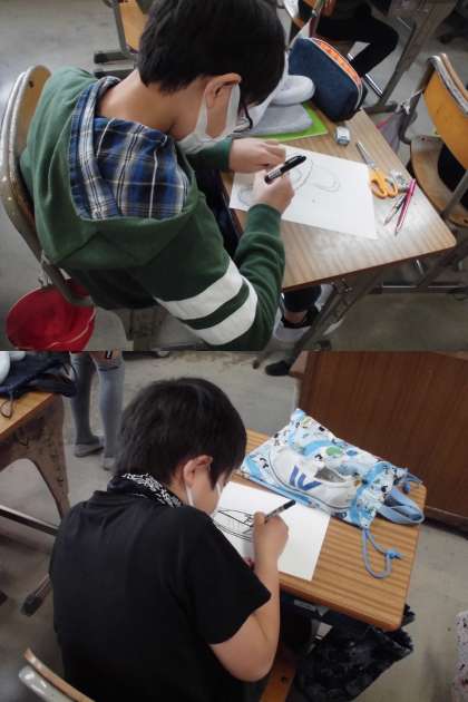 絵を描くためのポイントをいくつか聞いた後、ゆっくりゆっくり描き進めています。