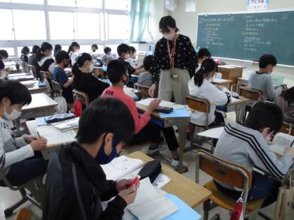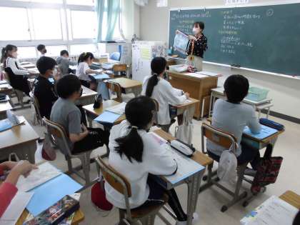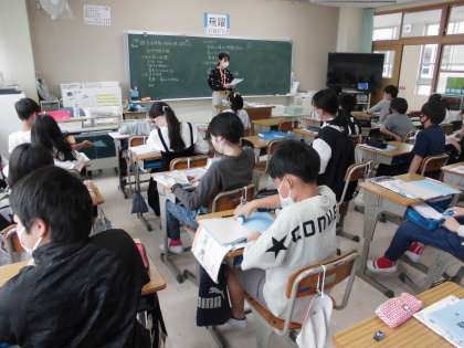 授業の最後には、次に取り組むナップザックのお話を聞いています。楽しみですね。