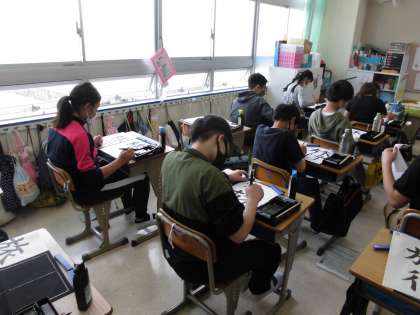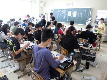 習字の授業で「旅行」という作品に取り組んでいます。