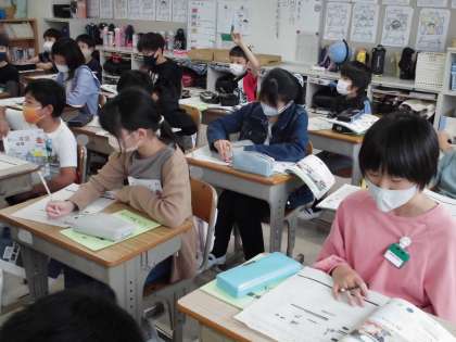 家庭科の授業で裁縫の学習に取り組んでいます。