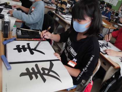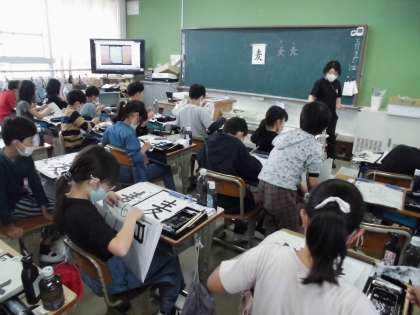 習字の授業で「麦」という字に取り組んでいます。