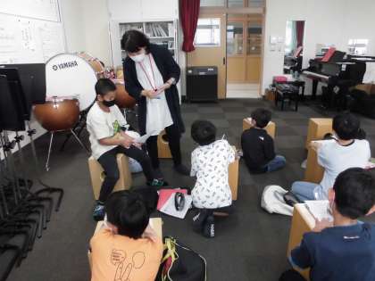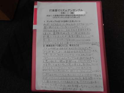 校長先生が見に行った時には、すでに発表が終わり、感想を書いていたのですが、子どものワークシートには、自分の頑張りだけではなく、ほかのグループの頑張っているところなど、びっくりするようなコメントがびっしり書かれていました。話を聞いてみると、音楽系の習い事に通っているそうです。積み重ねが生きていますね。
