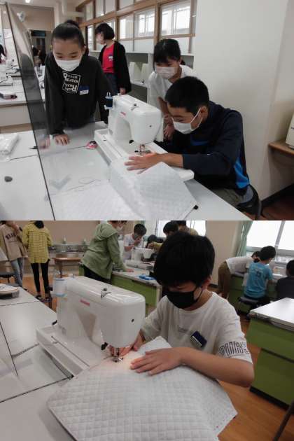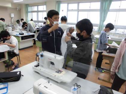 ナップザックづくりもミシンを使う段階に入っています。がんばって仕上げてくださいね。