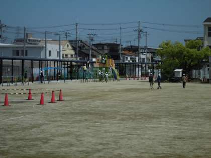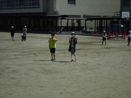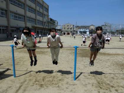運動場の様子を見ていると、楽しそうに鉄棒で遊んでいる子どもがいました。