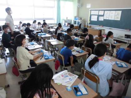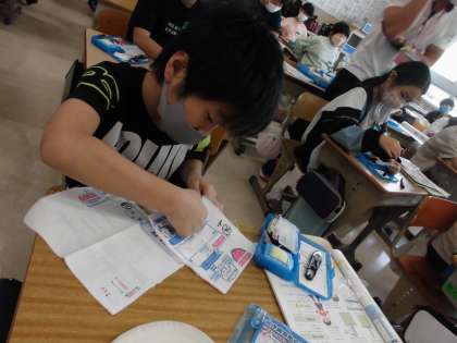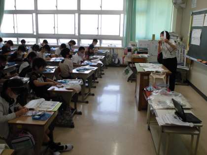 玉止め、玉結びの練習中です。上手にできるようになったら、校長先生のボタンもつけてくださいね。