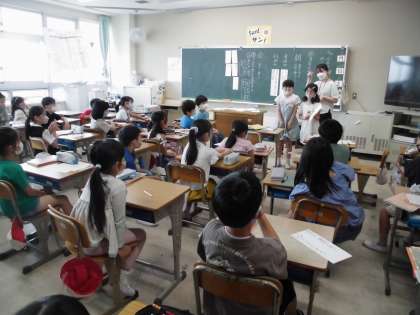 自分たちで調べたお気に入りの音読みと訓読みを発表しています。