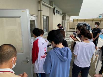 水泳開始に向けて、教職員の水泳研修が行われています。安全に水泳が出来るように、機械説明や水泳の心構えを共有しています。