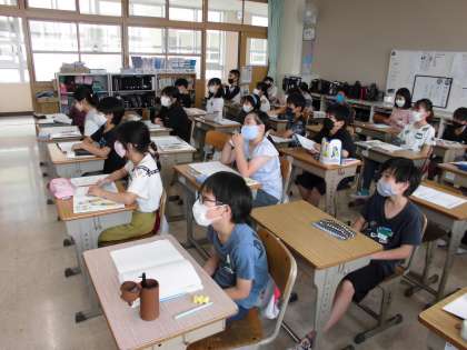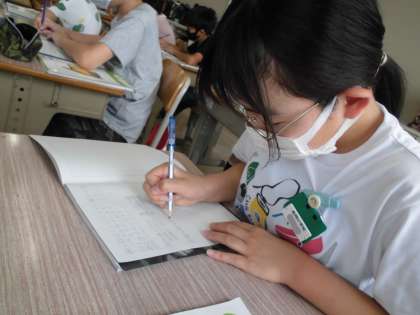 目の前にいた子どものノートを見ると、とってもきれいな字で書いていました。話をしてみると「きれいな字で書くと、あとで見返したときに気持ちがいい」と話してくれました。校長先生も同感です。そんなノートをこれからも作ってください。