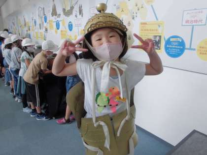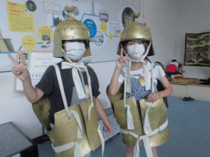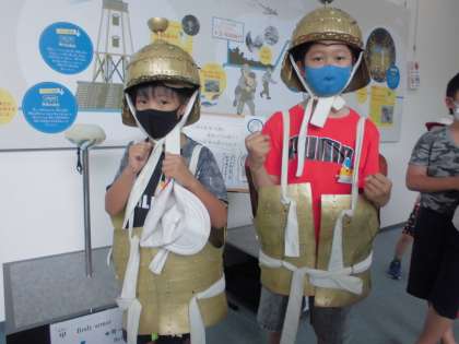 甲冑着てみました。子どもたちの感想は「重い!!」でした。