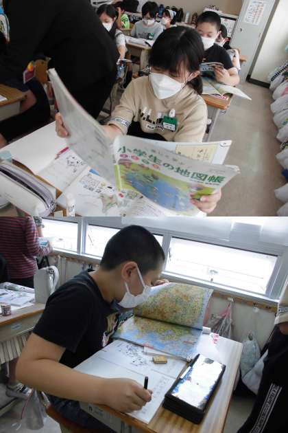 自分の考えの根拠を地図帳から探す姿も見えます。