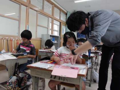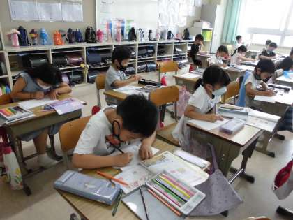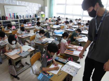 今日は、自分で考えた「たしざん絵本」の作成中です。