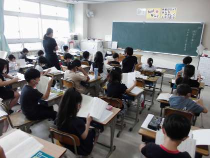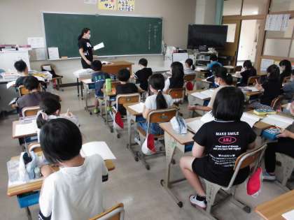 まずは、担任の先生が読む俳句を静かに聞いています。