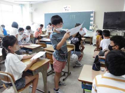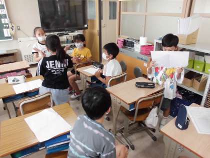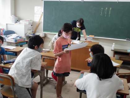 国語の授業で学習した「まいごのかぎ」の感想を発表しています。