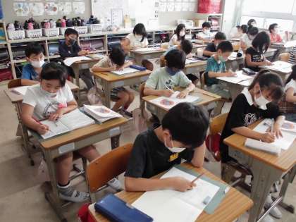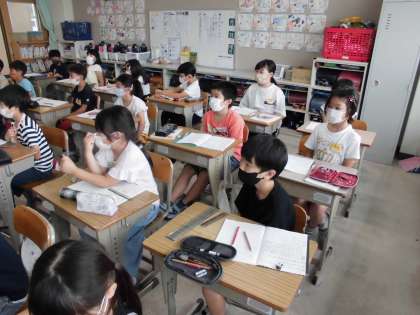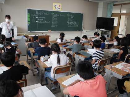 「あん算」の学習です。どんな工夫をして計算すればいいかな。みんなで考えています。