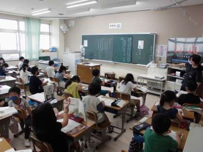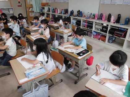 国語の授業中です。今日は、「おおきなかぶ」を読んで考えています。