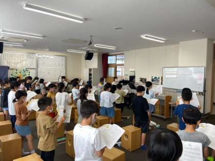 週1、2回の音楽ですが、子どもたちはとても意欲があり、教室後ろの1日の時間割表に「下世古先生の音楽授業」と書いてあるのを見るだけで、「よっしゃあ!!音楽や!下世古先生の授業やー!!」と言うくらい楽しみにしています。